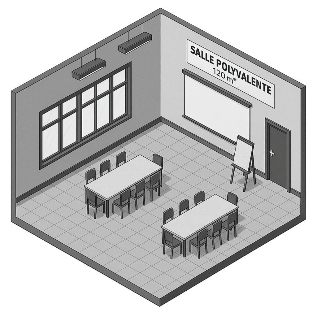 Nos salles de réception polyvalente peuvent accueillir entre 40 et 200 personnes selon la configuration cockatil debout ou repas assis mais il y a aussi la possibilité de louer le jardin extérieur(120m² supplémentaire).